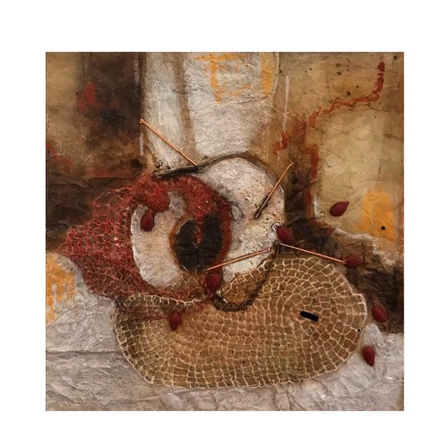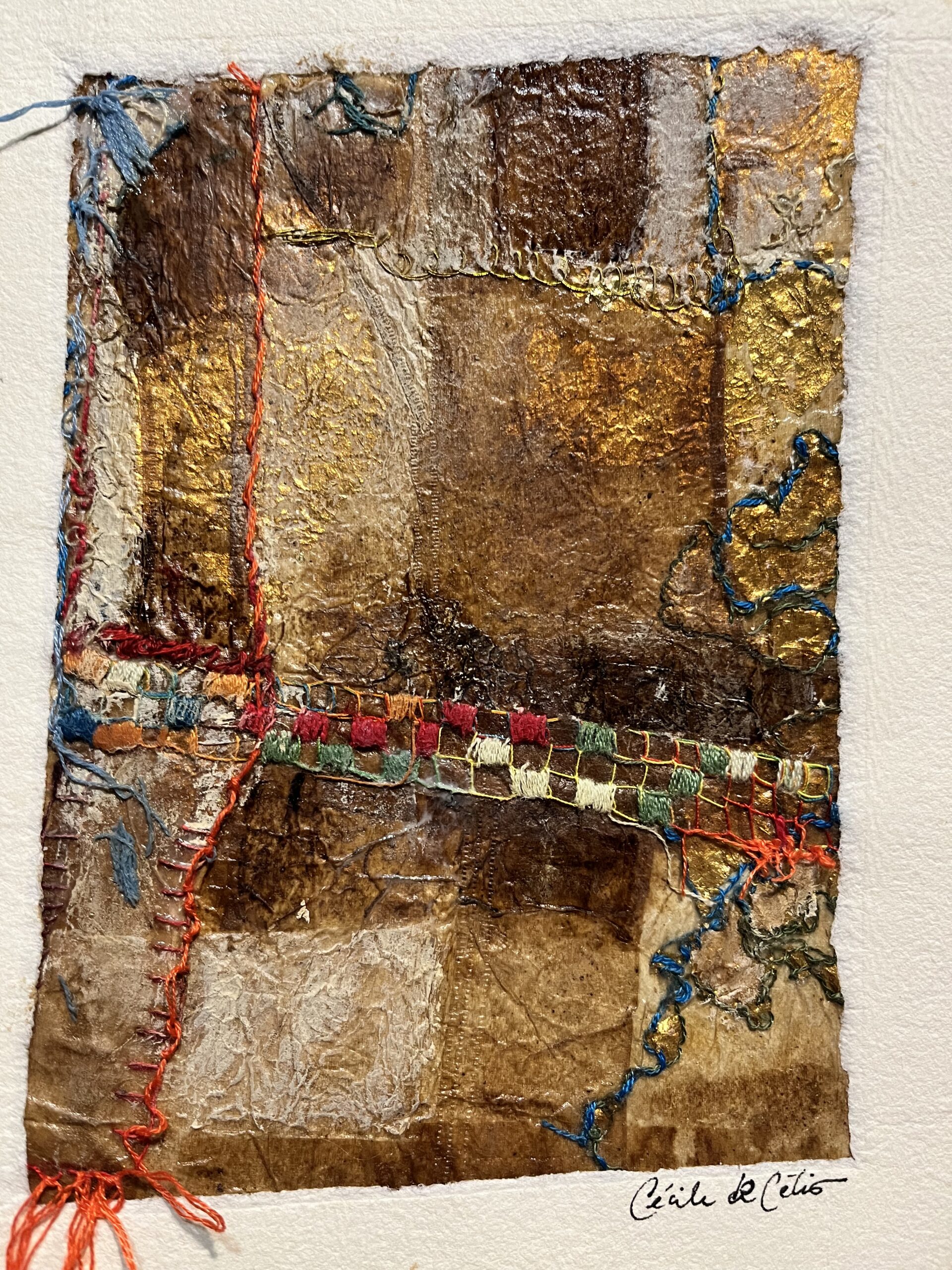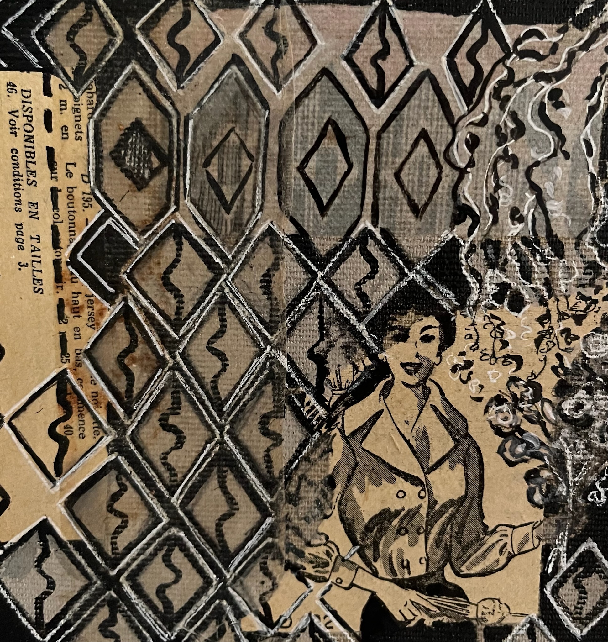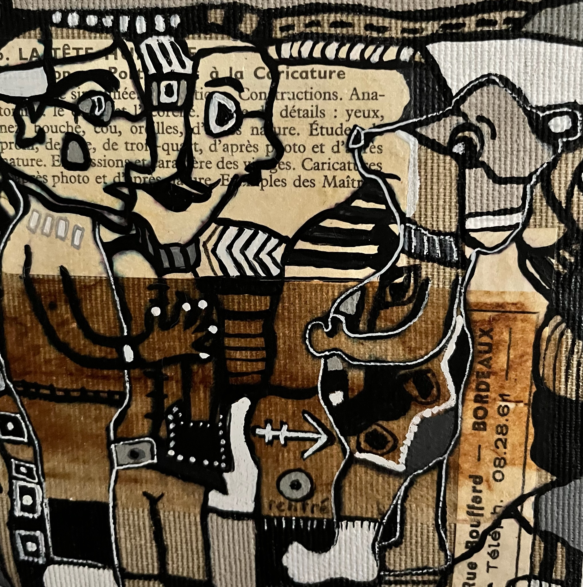 collage et encre sur toile marouflé sur carton 13 x 13 cm