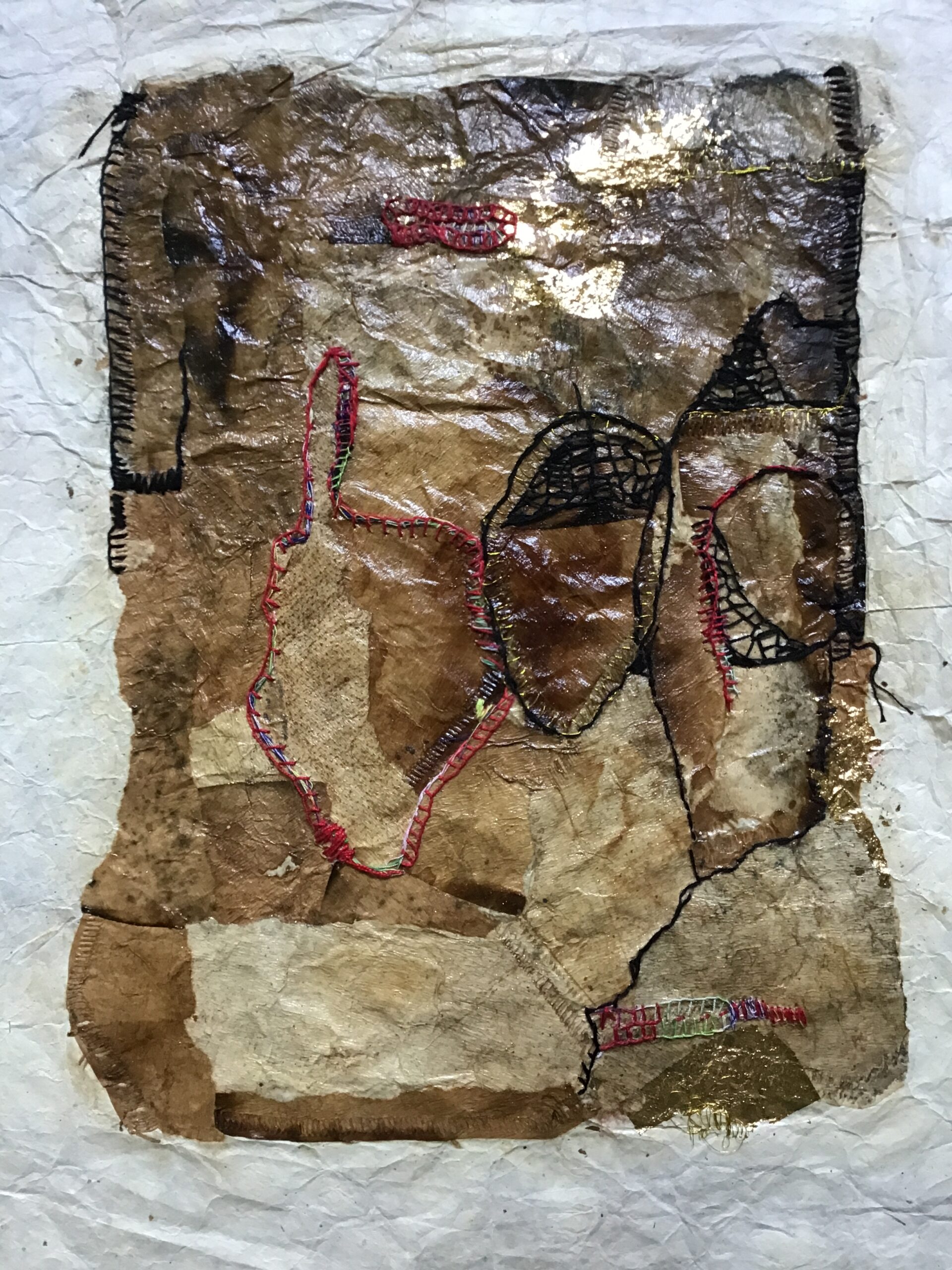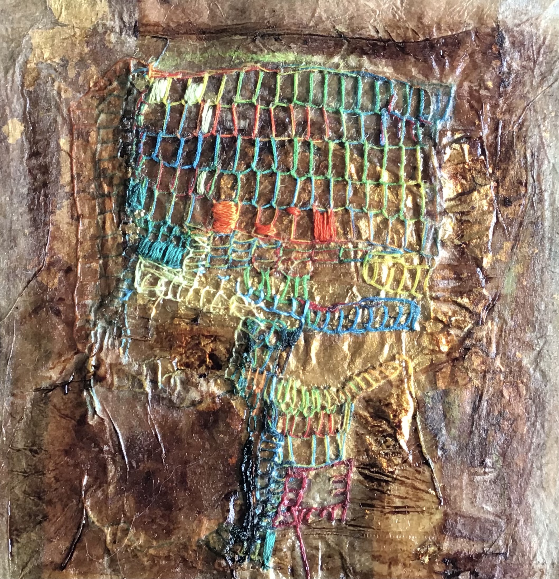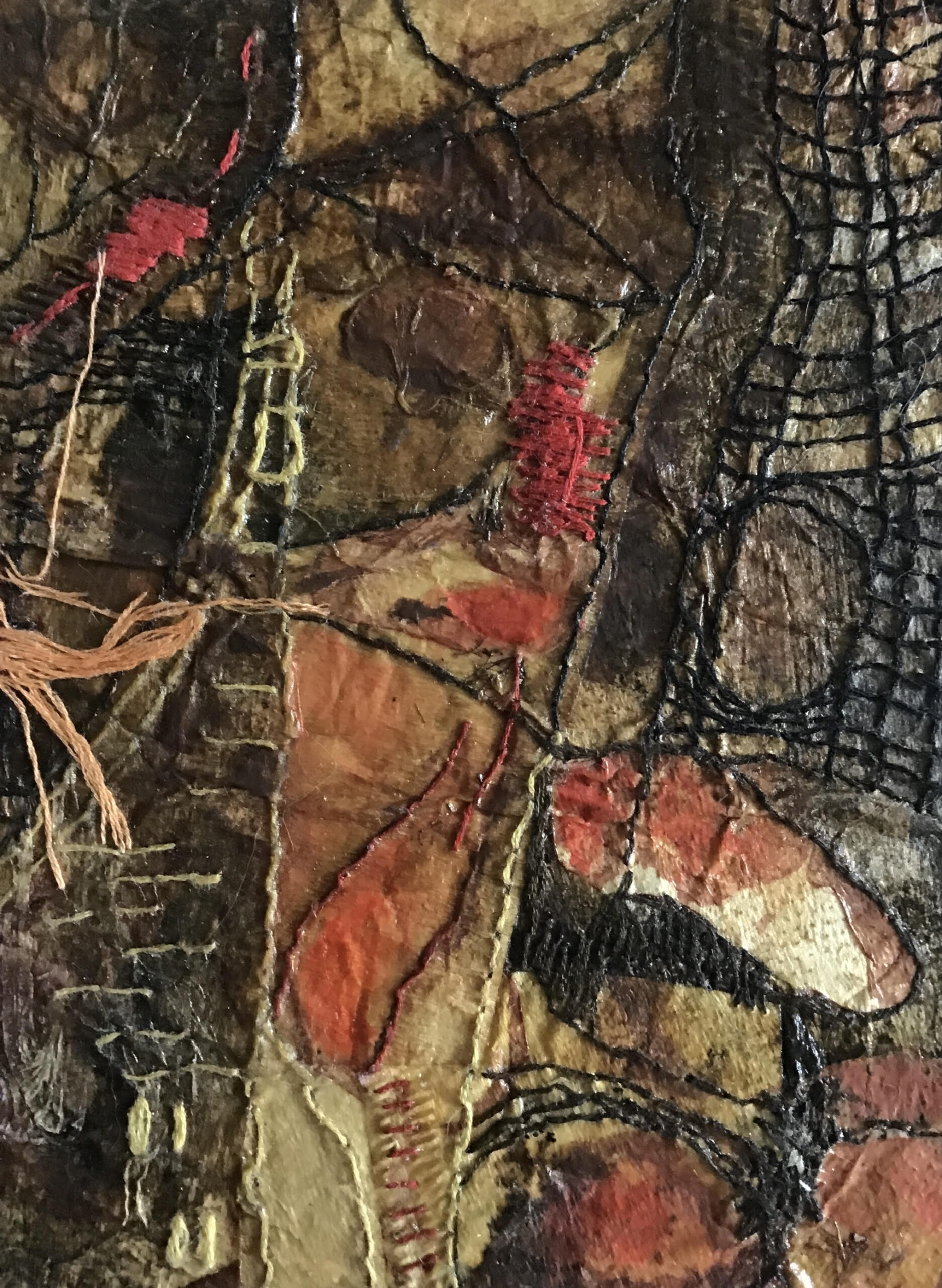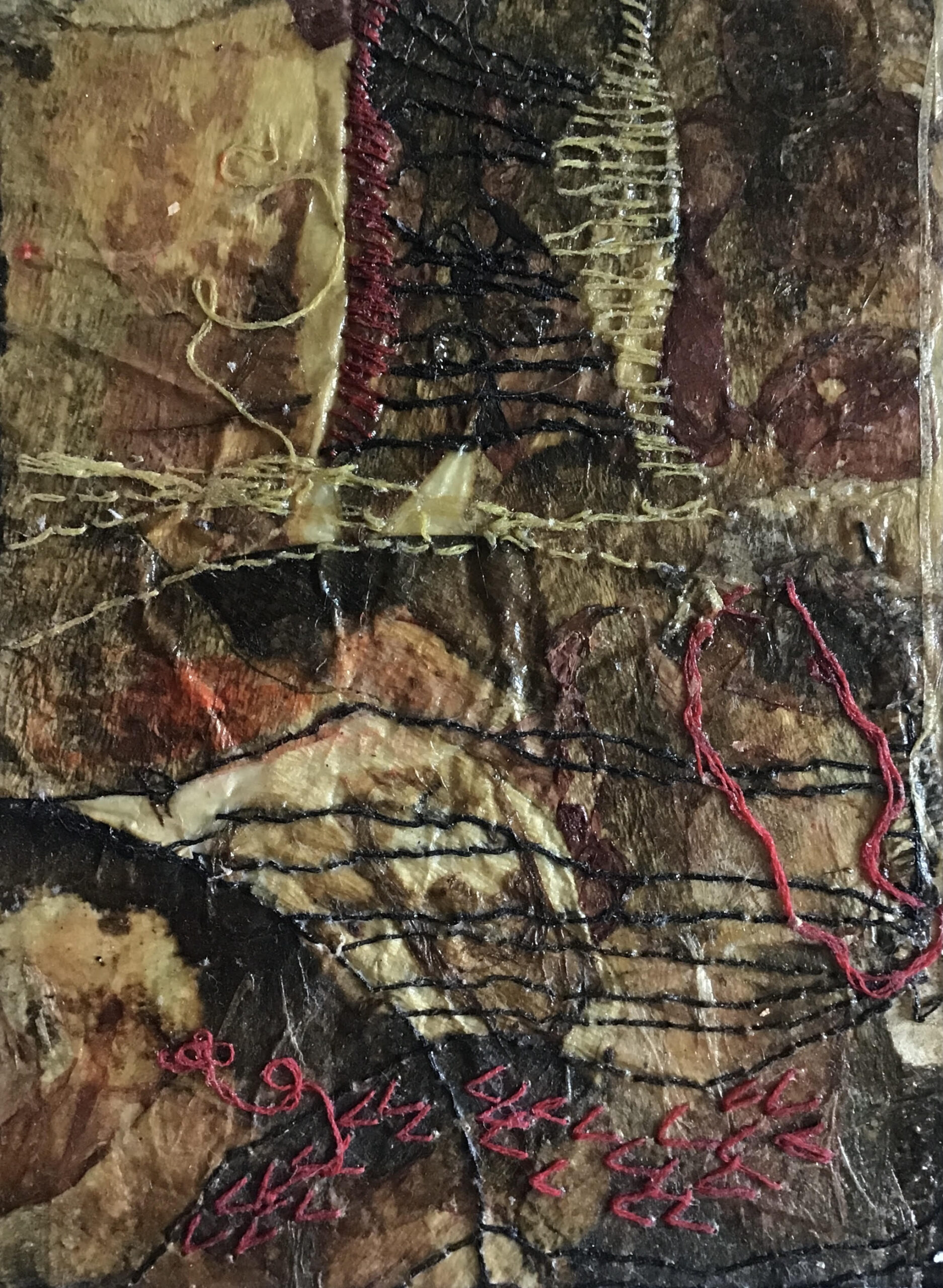 collage et encre sur toile marouflé sur carton 13 x 13 cm