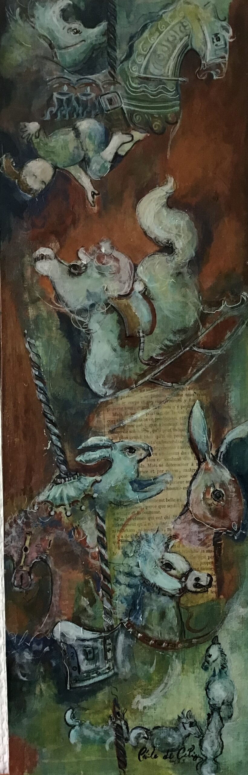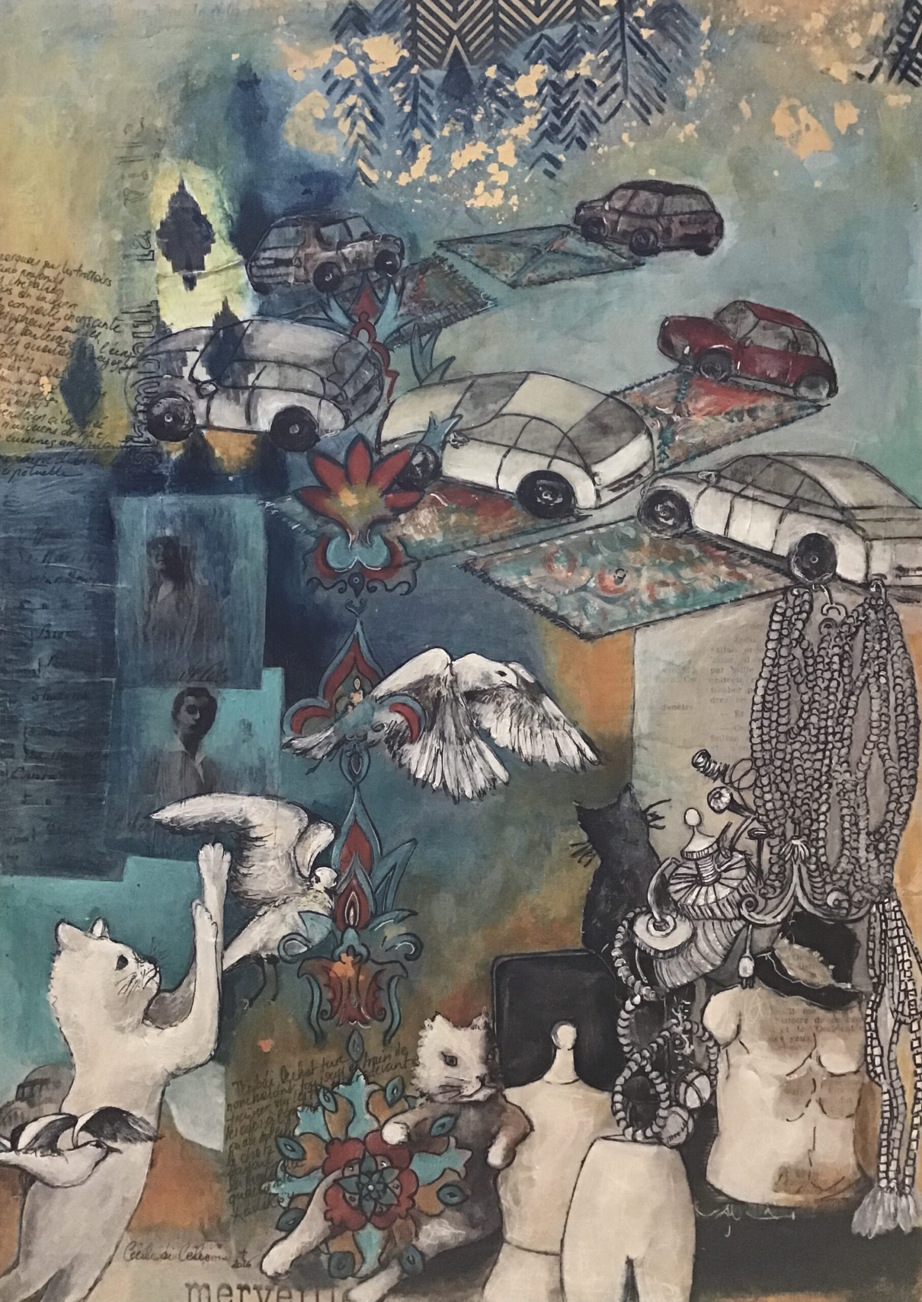 Dans sa peinture, Cécile de Célis nous invite à entrer dans son univers où le rêve et la réalité sont étroitement liés dans leur composition.