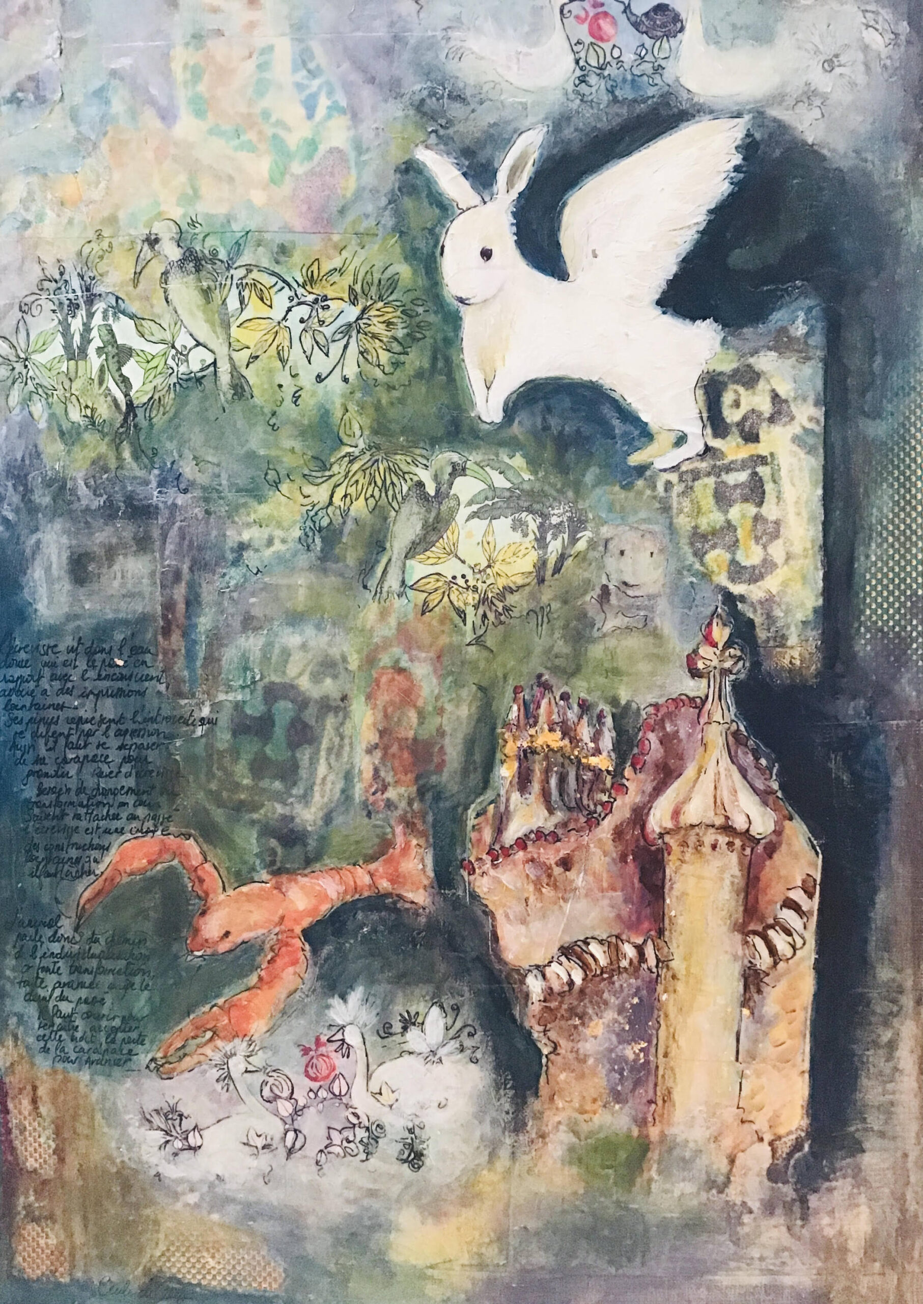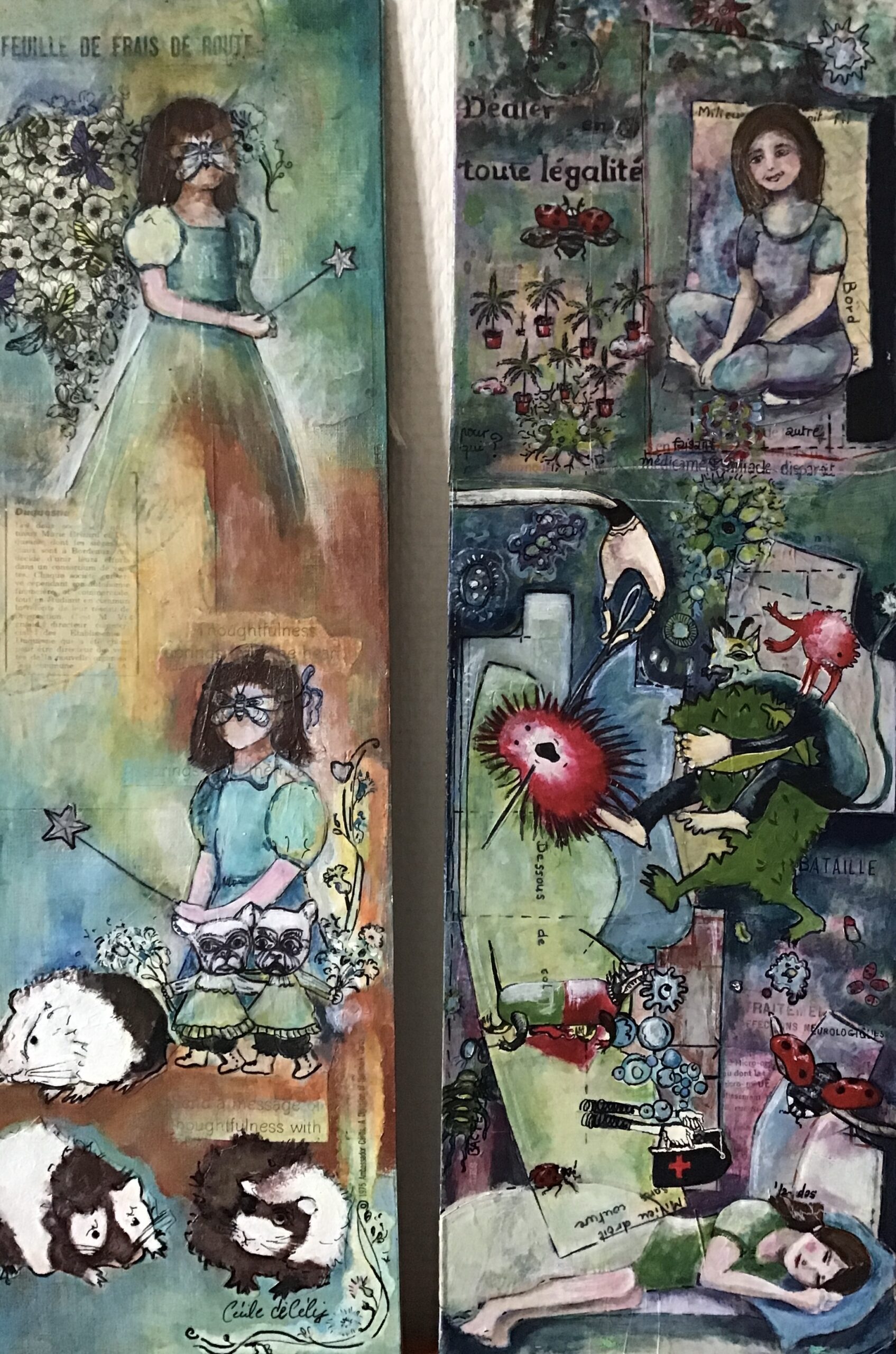 Actuellement, son travail de plasticienne la mène dans différents moyens d’expression comme celui de la peinture , de l’illustration jeunesse et de la broderie.