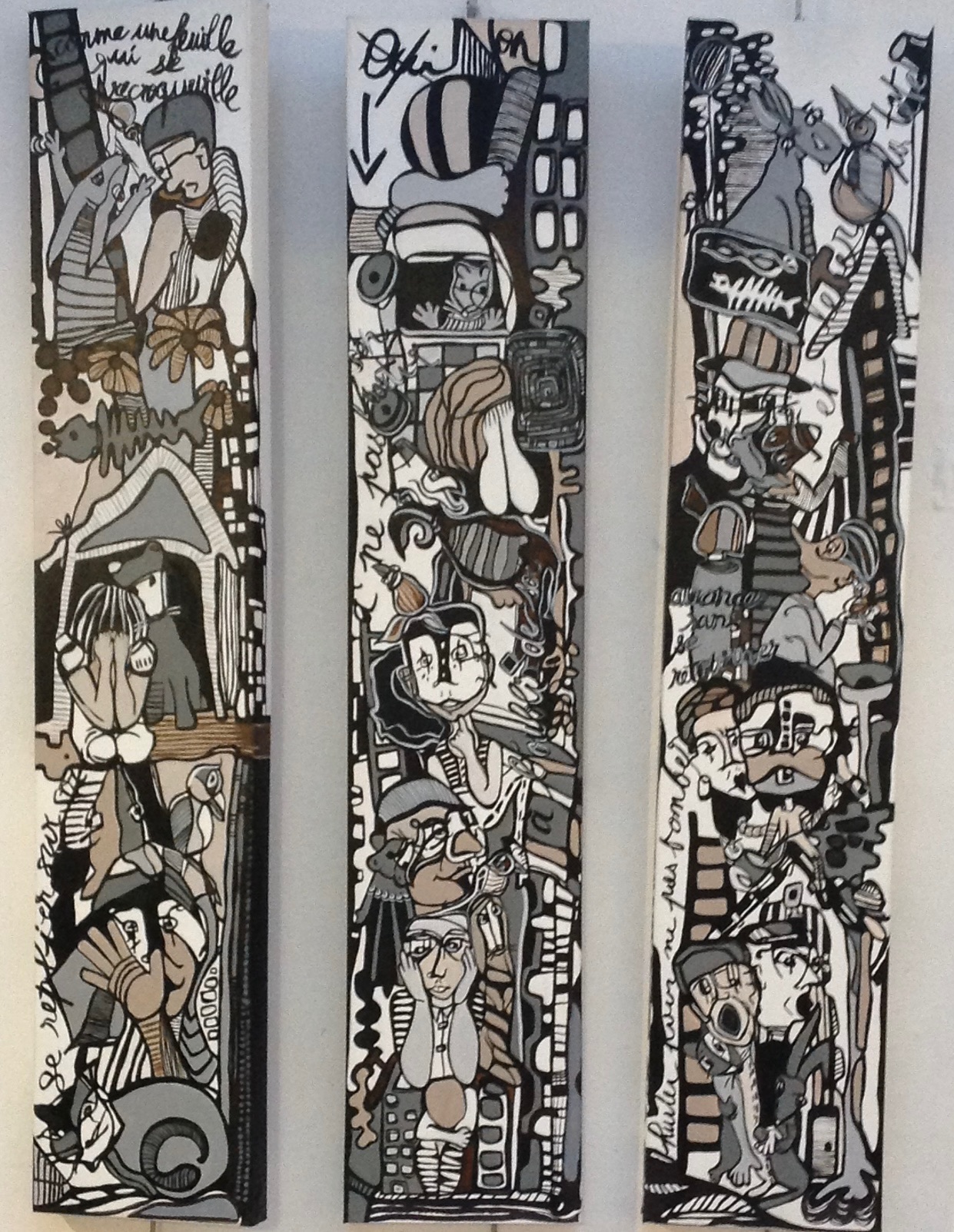 Petits Totems, acrylique sur toile 100 x 20 cm