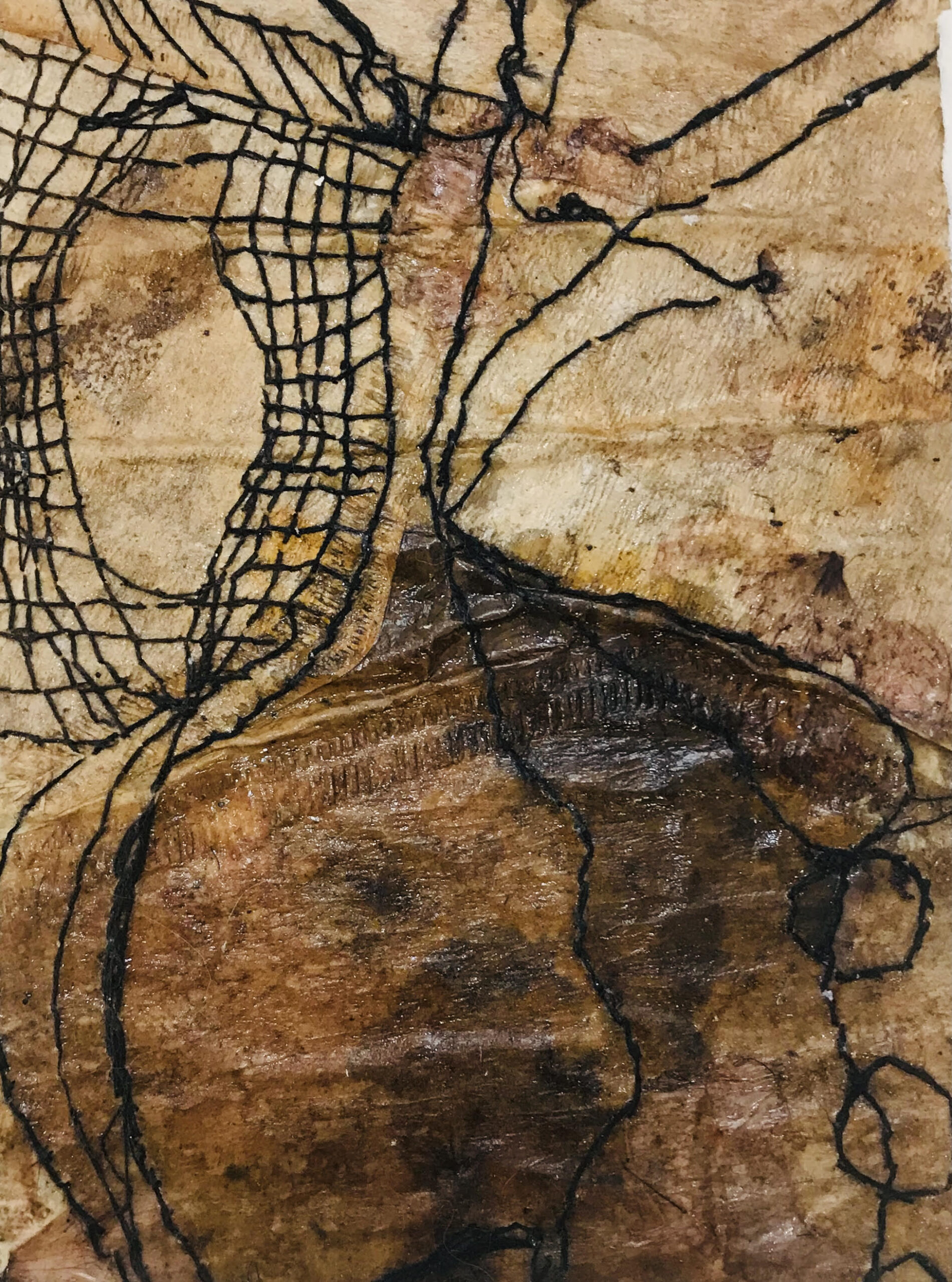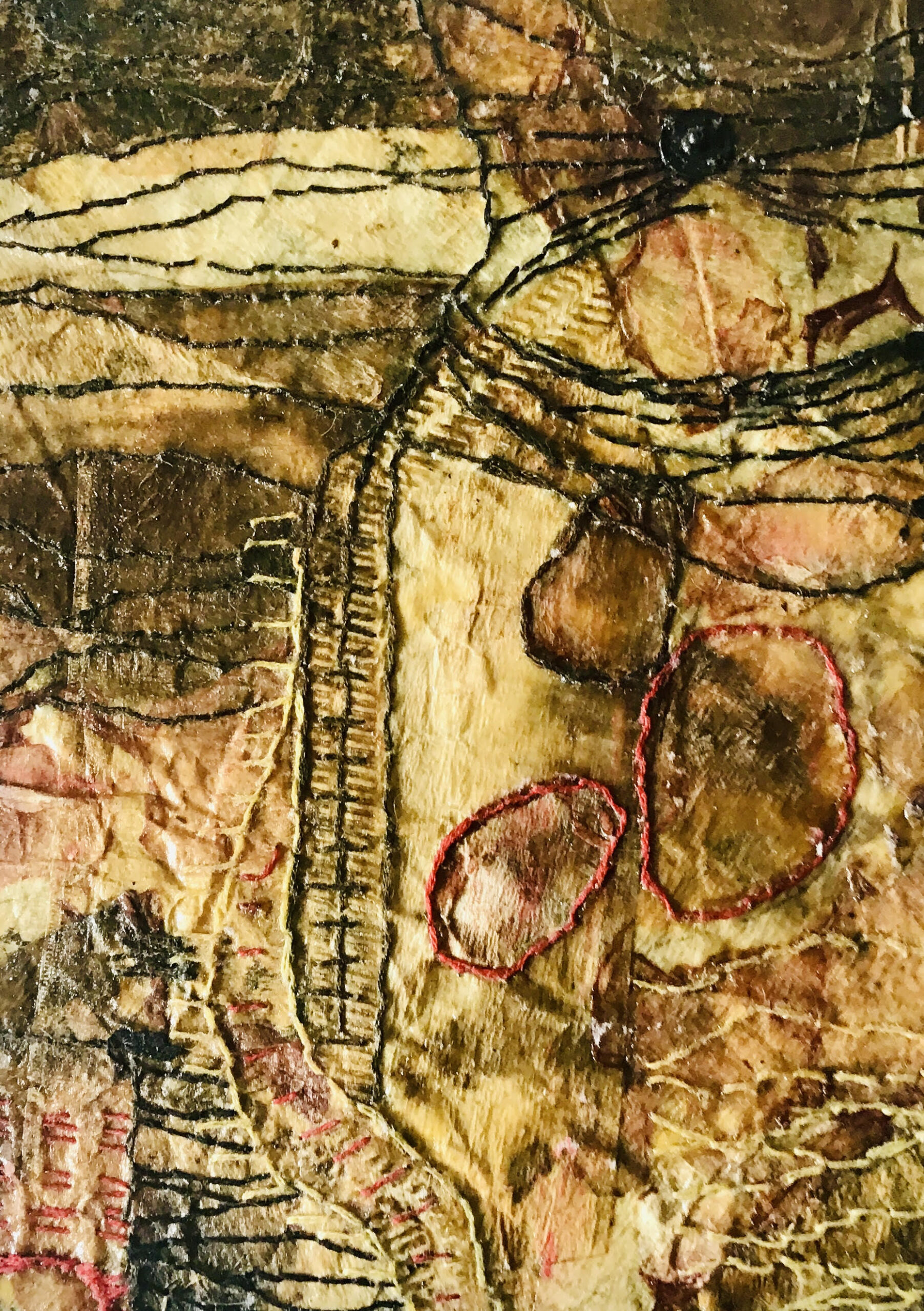 « Dans ma broderie, le temps est comme suspendu. Entre fils et aiguille, mon geste lent et répétitif m’aide à rentrer dans une sorte de méditation qui répare.»